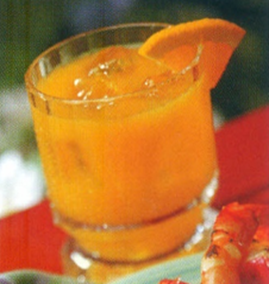 Serveres i et bredt glas. Pyntes med en appelsinskive.