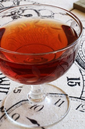 Likøren får en rund og fyldig smag med en smuk mørk farve.