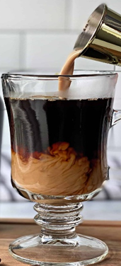 Hæld fløde forsigtigt over kaffen, lad dem ikke blande sig.