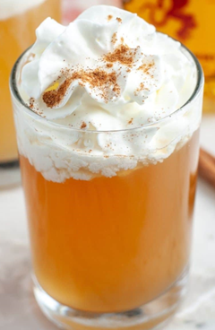 Hældes i longdrinkglas og toppes med flødeskum og muskatnød.