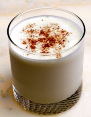 Ryst godt. Si over i et glas og pynt med muskatnød.
