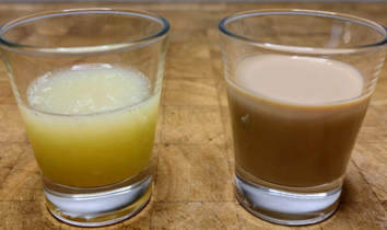 Fyld det andet shotglas med lime og rom.