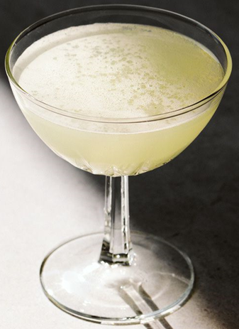 Hældes gennem barsi i et cocktailglas.