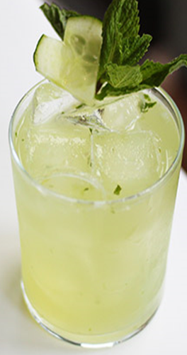 Limeskive og melisse anbringes på kanten af glasset