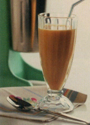 Serveres i et højt longdrinkglas.