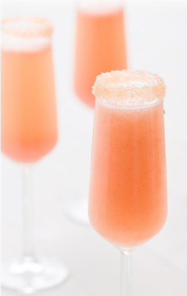 Fakta: den syrlige citrus serveres bedst med masser af bobler. Den bedste del? Denne mimosa har en smart pastelkant fra sukker.